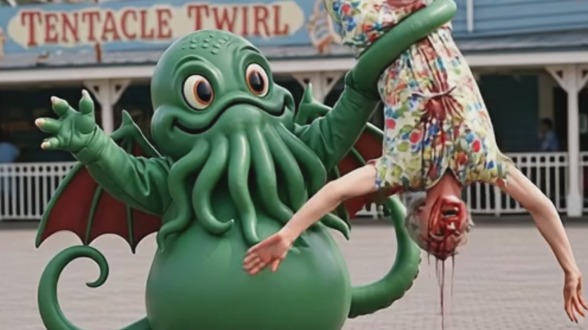 Tourists Mauled: 321 | Clowns Unaccounted For: 10 | Incident Reports Filed: 4,184 | Popcorn Buckets Sold: 661 | Portal Hopping Accidents: 12 | Resurrection & Restoration Insurance Claims Filed: 300 | Bottles of Gin Consumed: 2 | Feral Children Population: Unknown | Dimensional Threshold Breaches: 2 | Gallons of Blood Spilled: 12,219